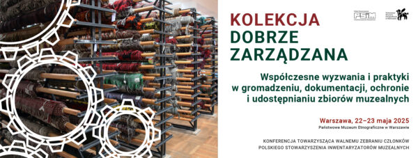 Szanowni Państwo, Drogie Koleżanki i Koledzy, Zarząd Polskiego Stowarzyszenia Inwentaryzatorów Muzealnych oraz Dyrekcja Państwowego Muzeum Etnograficznego w Warszawie serdecznie zapraszają Państwa do czynnego udziału w nadchodzącej konferencji, która odbędzie się w dniach 22-23 maja 2025 w Państwowym Muzeum Etnograficznym w Warszawie. Przyszłoroczne spotkanie połączone z Walnym Zebraniem Członków PSIM będzie już siódmą konferencją organizowaną przez nasze Stowarzyszenie. Planowane wydarzenie odbędzie się pod hasłem: „Kolekcja dobrze zarządzana. Współczesne wyzwania i praktyki w gromadzeniu, dokumentacji, […]